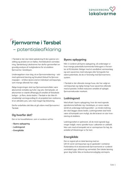 Her finder du potentialeafklaringer på de undersøgte landsbyer udført af Sønderborg Lokalvarme.