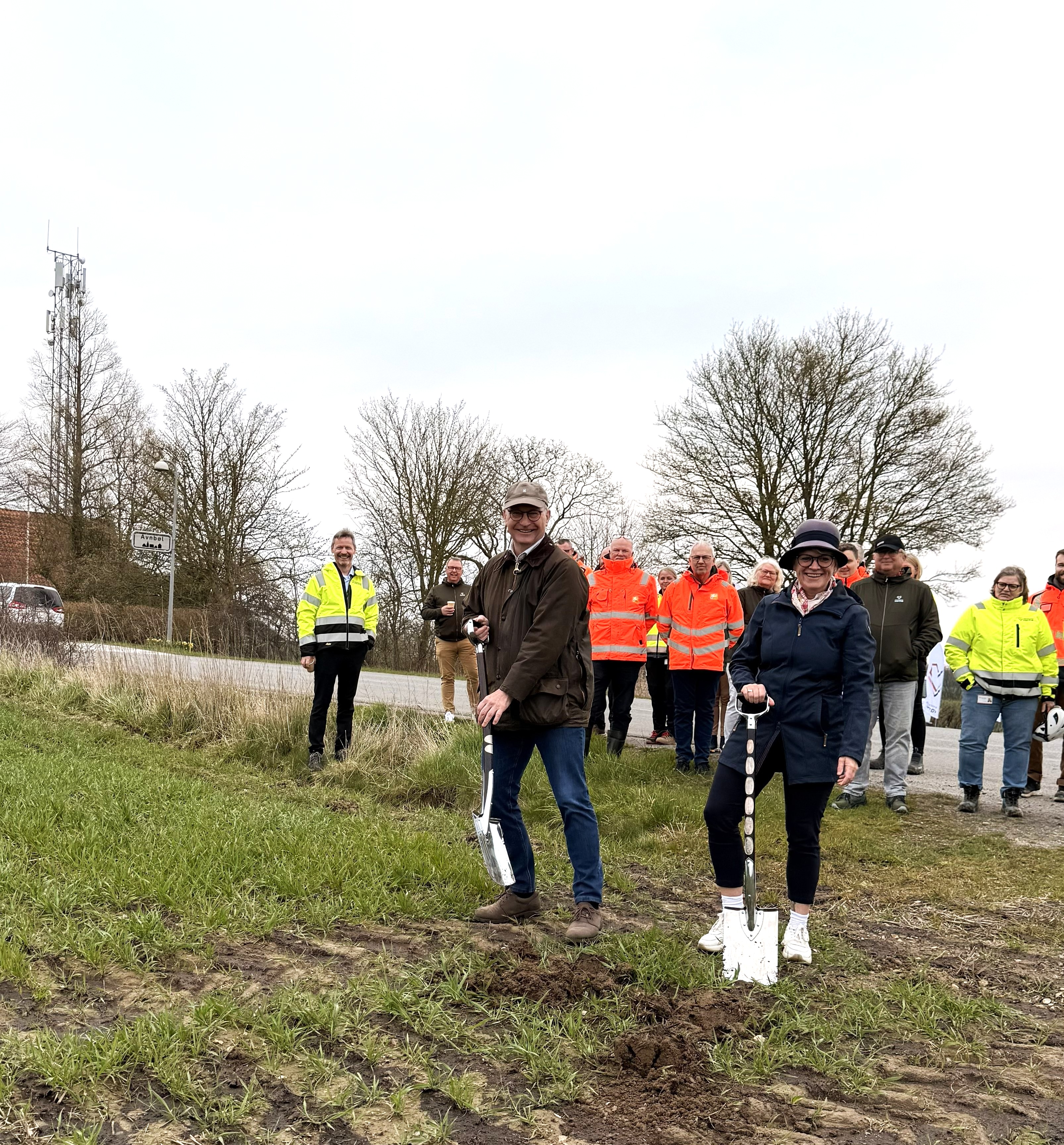 Onsdag den 15. april blev det første spadestik taget i forbindelse med etableringen af transmissionsledningen – og dermed udbygningen fjernvarmen i den vestlige del af Sønderborg Kommune. Det var samtidig også startskuddet på en cykelsti mellem Avnbøl og Adsbøl.
