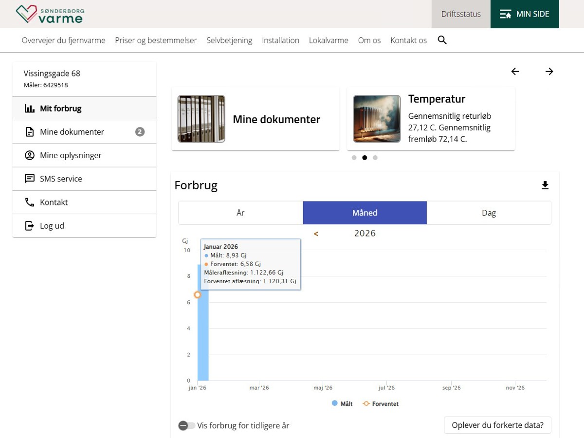 Vi sender løbende besked til vores forbrugere med information om, hvor og hvordan du kan følge dit varmeforbrug.