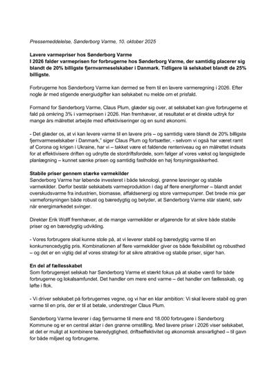 Bestyrelsen for Sønderborg Varme har på et møde torsdag aften godkendt budgettet og varmeprisen for 2026. Og det er godt nyt, for som forbruger hos Sønderborg Varme kan du se frem til en lavere varmepris fra 1. januar 2026.