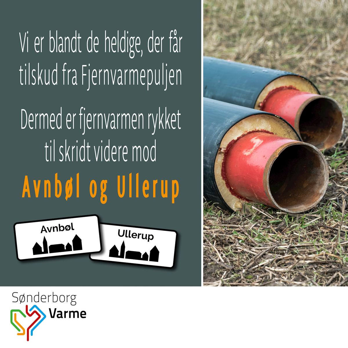 Sønderborg Varme har nu fået det endelige tilsagn fra Energistyrelsen om tilskud fra Fjernvarmepuljen til vores indsendte projektforslag om fjernvarme til Avnbøl og Ullerup. Tilskuddet er afgørende for muligheden for at etablere fjernvarme i Avnbøl/Ullerup, og har derfor haft den allerhøjste prioritet hos Sønderborg Varme.